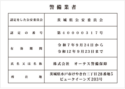 会社名 | 株式会社オーテス警備保障 |